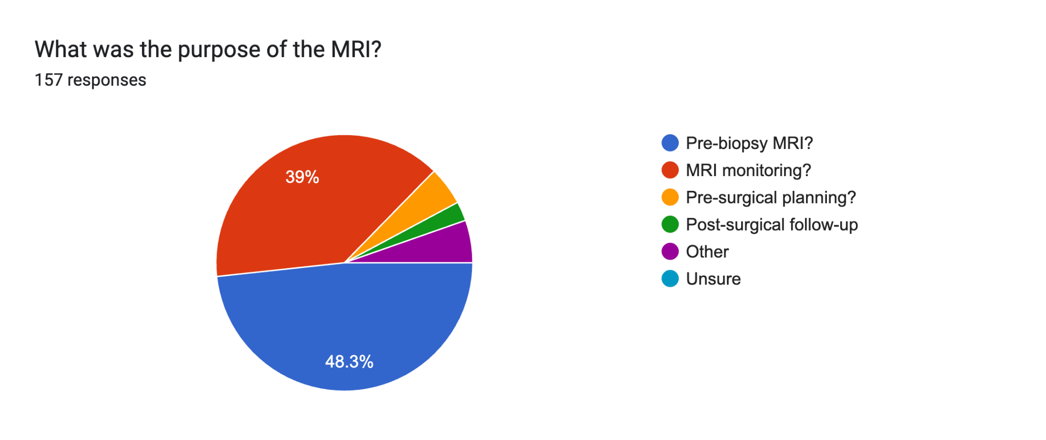 Patients are not yet being offered the choice of a biparametric MRI. Only 5% of respondents said they were offered biparametric as an option.